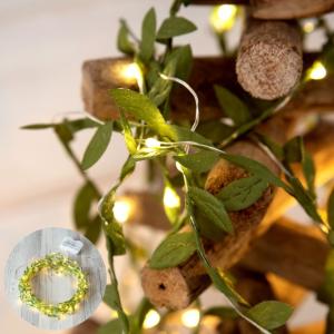 イルミネーションライト LEDライト 電飾 ガーランド クリスマスツリー装飾 リモコン付き グリーンリーフ 乾電池式 照明器具 92109