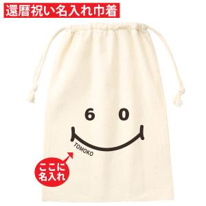 還暦 お祝い 名前 プリント 巾着 還暦祝い 名入れ スマイル ニコちゃん マーク プレゼント ギフト 男性 女性 退職 ラッピング オリジナル 293M 294L