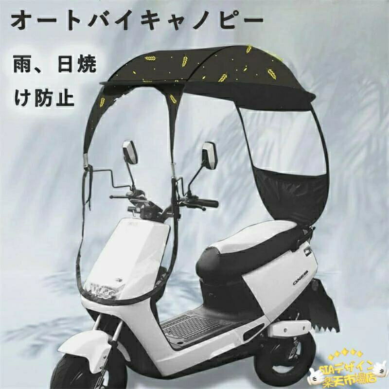 オートバイキャノピー バイク屋根 モーター自転車 サンバイザーシェードテント 傘風防 むぎのほ バックミラー付き 車
