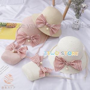 キッズ 帽子 麦わら帽子 2点セット 帽子 鞄 ショルダーバッグ カバン 女の子