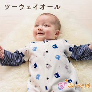 【メール便送料無料】秋冬 新生児 ベビー服 3配色ツーウェイオール+ミトン ベビーウェア 日本製