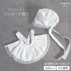 【人気商品】お宮参り フードセット 2点セット 涎掛け 帽子 白 刺繍 入り 洗える 産着 女児 男児 兼用 よだれ掛け スタイ エプロン 宮参り 100日参り 初着