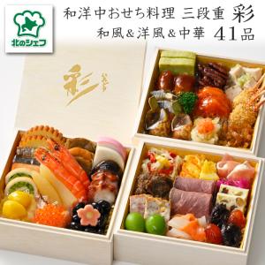 【関東最短元旦着可能&お年玉セールで9,980円】三段重おせち「彩」 6.5寸3人前41品入 全国送料無料