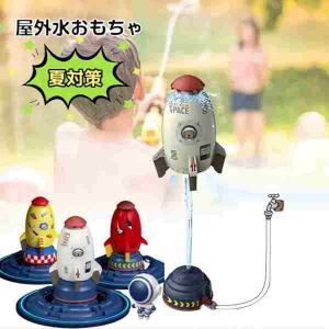 度回転 子供用スプリンクラー ロケットランチャー、裏庭の庭でのアクティビティ用の夏の屋外水のおもちゃ、