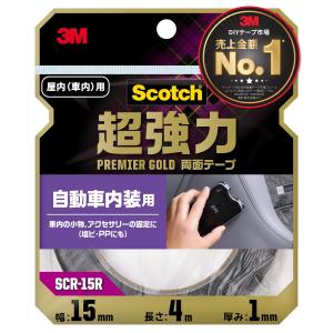3M スコッチ 超強力 両面テープ プレミアゴールド 自動車 内装用 幅15mm長さ4m SCR-15R 車内小物 カーアクセサリー固定用