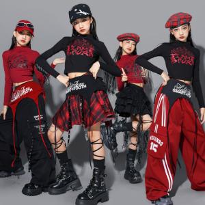 79番 赤 白 レッド レース デニム キッズ ダンス衣装 ヒップホップ 女の子 ジャズダンス セットアップ チア 子供服 トップス パンツ k-pop 衣装 jazz hiphop韓