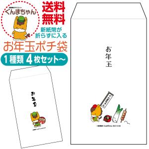 新紙幣が折らずに入るお年玉ポチ袋 オリジナルデザイン 1種類4枚セット〜