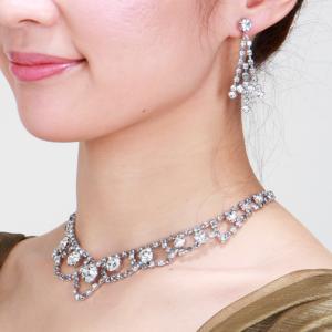 【ネックレス&イヤリング-レンタル】 ブライダルアクセサリー 結婚式 シルバー 159s 往復送料無料