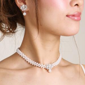【ネックレス&イヤリング-レンタル】 ブライダルアクセサリー 結婚式 パール オフパール 641