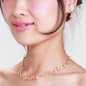 【ネックレス&イヤリング-レンタル】 ブライダルアクセサリー 結婚式 パール/ゴールド anl1144