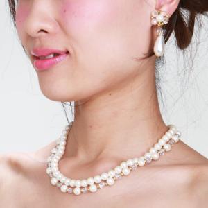 【ネックレス&イヤリング-レンタル】 ブライダルアクセサリー 結婚式 パール/クリスタル fp005w