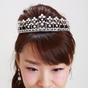 ティアラ レンタル ブライダルアクセサリー 結婚式 クラウン 王冠 シルバー&パール ヘッドドレス ti-374