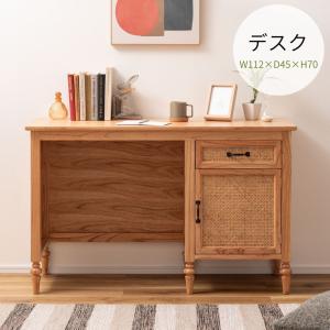 デスク PM-515NA 机 テーブル 木製デスク アンティーク調 ラタン 引出 引き出し 天然木 ミンディ 可動板 かわいい ボビンレッグ