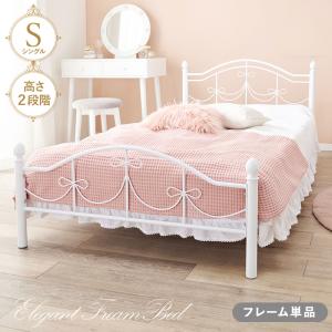 シングルベッド KH-3099S KH-3099S-WH シングル 寝具 寝室 高さ調節可 新生活 リボン フェミニン ホワイト 姫系