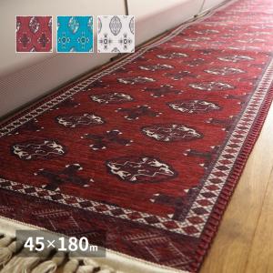トルクメン風プリントマット 240623211 約45×180cm 絨毯 ドアマット フロアマット エントランス ラグ 高級感 シック ゴージャス