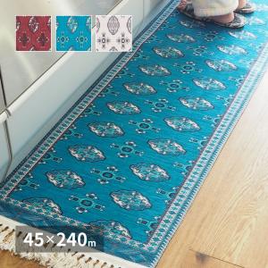 トルクメン風プリントマット 240623221 約45×240cm 絨毯 ドアマット フロアマット エントランス ラグ 高級感 シック ゴージャス