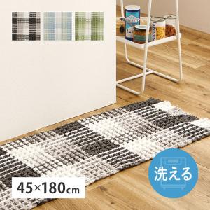 洗える キッチンマット エルフ 270101002 ワッフル風マット 約45×180cm ロングマット ワッフル ギンガムチェック 厚手 ポコポコ ラグ マット かわいい