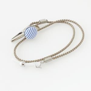 補聴器ストラップ 落下防止 ストライプ布地 シルクコード 片耳用 28cm グレー/マスタード/ダークブラウン