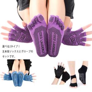 ヨガ五本指ソックス グローブセット!滑り止め付 5本指ソックス 健康ソックス ヨガ用ソックス ヨガ用靴下 五本指靴下 対策 レディース ピラティス フ