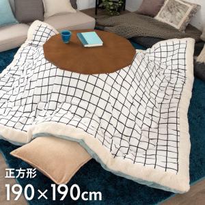 こたつ布団 正方形 約190×190cm グリッド柄裏面フランネルフリース こたつ掛け布団 こたつぶとん 格子柄 おしゃれ 洋風 北欧 83053