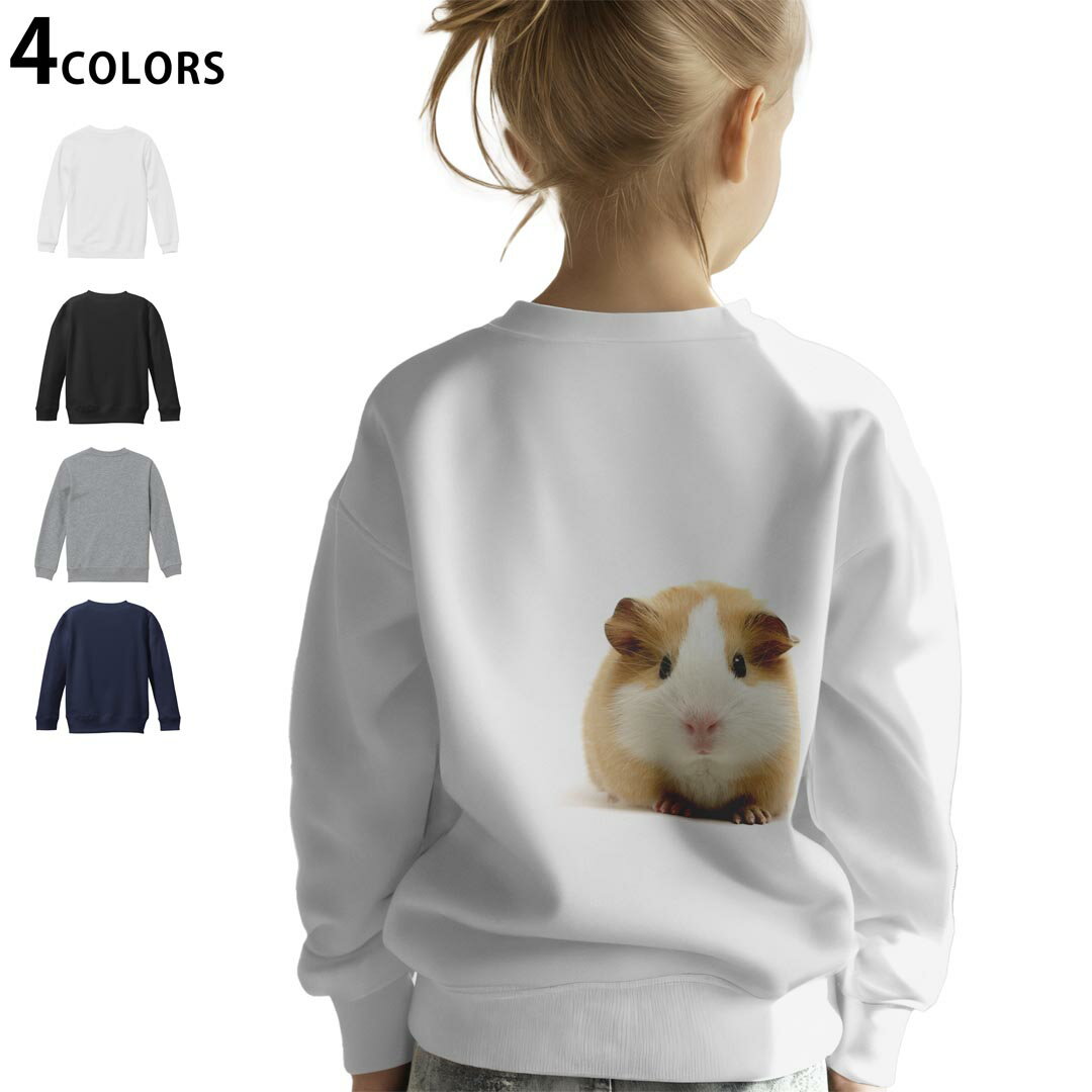 選べる3カラー バックプリント スウェットレーナー キッズ 男女兼用 男の子 女の子 ユニセックス unisex 長袖 デザイン リブ ホワイト ブラック 白 黒 グレー ネイビー 110 130 150 trainer sweat 022874 猿 チンパンジー 写真