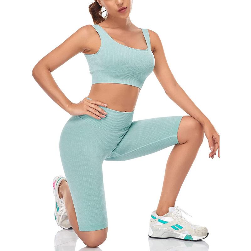 ヨガウェア レディース スポーツブラ セットアップ 吸湿速乾 ラウンドネック ノースリーブ ショートパンツ 運動着 トレーニング ランニング ジム フィットネス 水色 ブラック イエロー