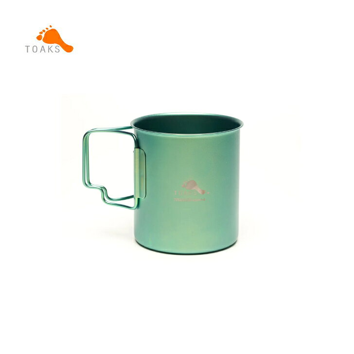 【TOAKS トークス】ウルトラライトチタンカップ 450ml グリーン カップ クッカー フタ別売 チタン製 厚さ0.3mm 48g 最軽量 滑らか質感 折りたたみ式ハンドル 耐久性 UL ハイク トレイル トレッキング 山行 アウトドア CUP-450-L-G