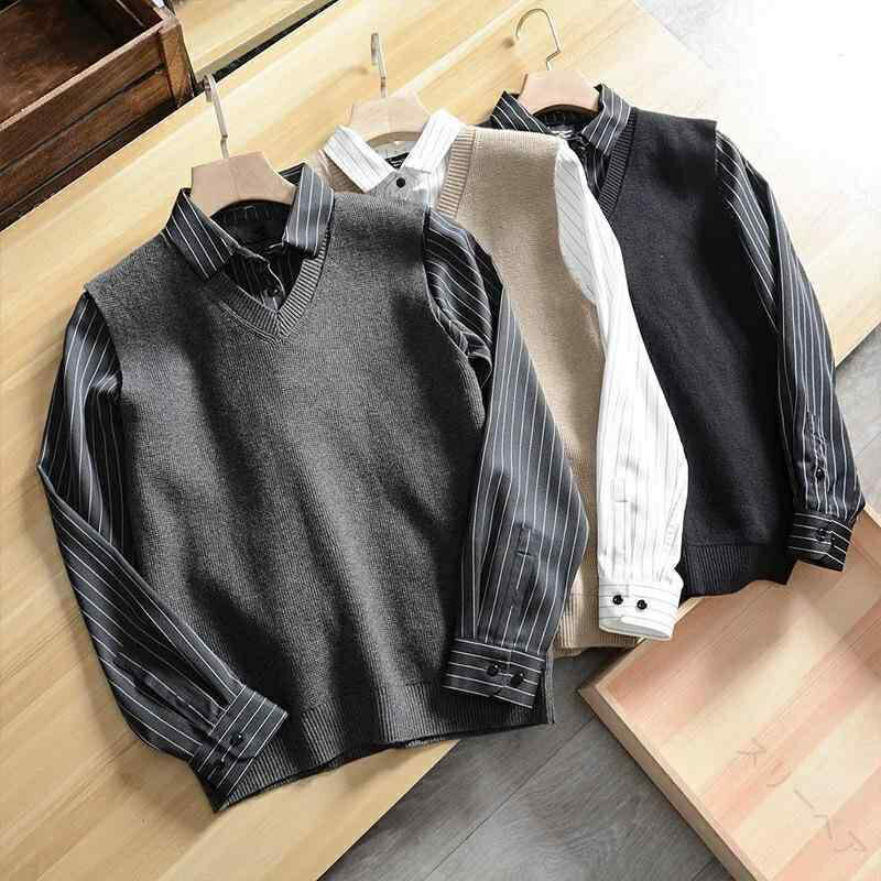 メンズ Vネックセーター 秋冬ニット 厚手ニット ビジネスセーター 通勤着 暖かいセーター シンプルニット メンズプルオーバー 冬服 長袖セーター