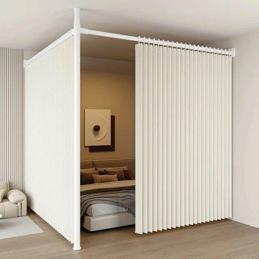 突っ張り パーテーション 部屋 仕切り (幅90-410cm 奥行90-410cm 高さ210-310cm) カーテン付きX2 断熱防寒 アコーディオンカーテン 遮光 調節可能 伸縮可能