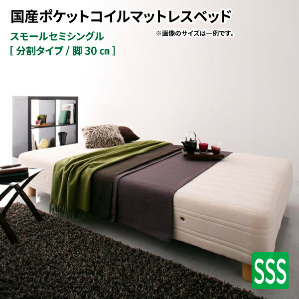 脚付きマットレスベッド スモールセミシングル 木脚30cm 日本製 ポケットコイル 分割タイプ SSS ポケットコイルマットレスベッド マット付き (Waza ワザ) 送料無料