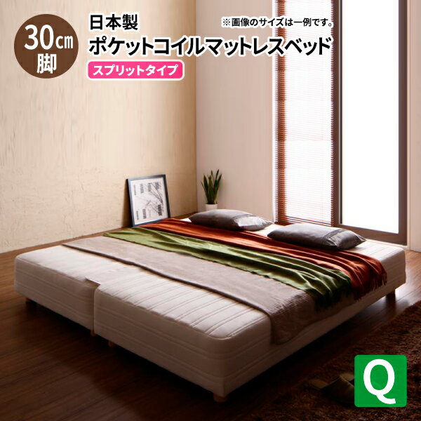 脚付きマットレス ベッド (クイーン 脚30cm 日本製ポケットコイル スプリットタイプ ) 家族向け 大型サイズ クイーンサイズ マット付き 脚付き マットレス ベッド ファミリー ベッド (モア) 送料無料