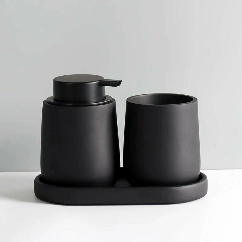 3点セット ソープディスペンサー 陶器 泡タイプ 手動ディスペンサー 収納トレイ 歯ブラシホルダー 洗面セット ポンプ式 320ml 詰め替え