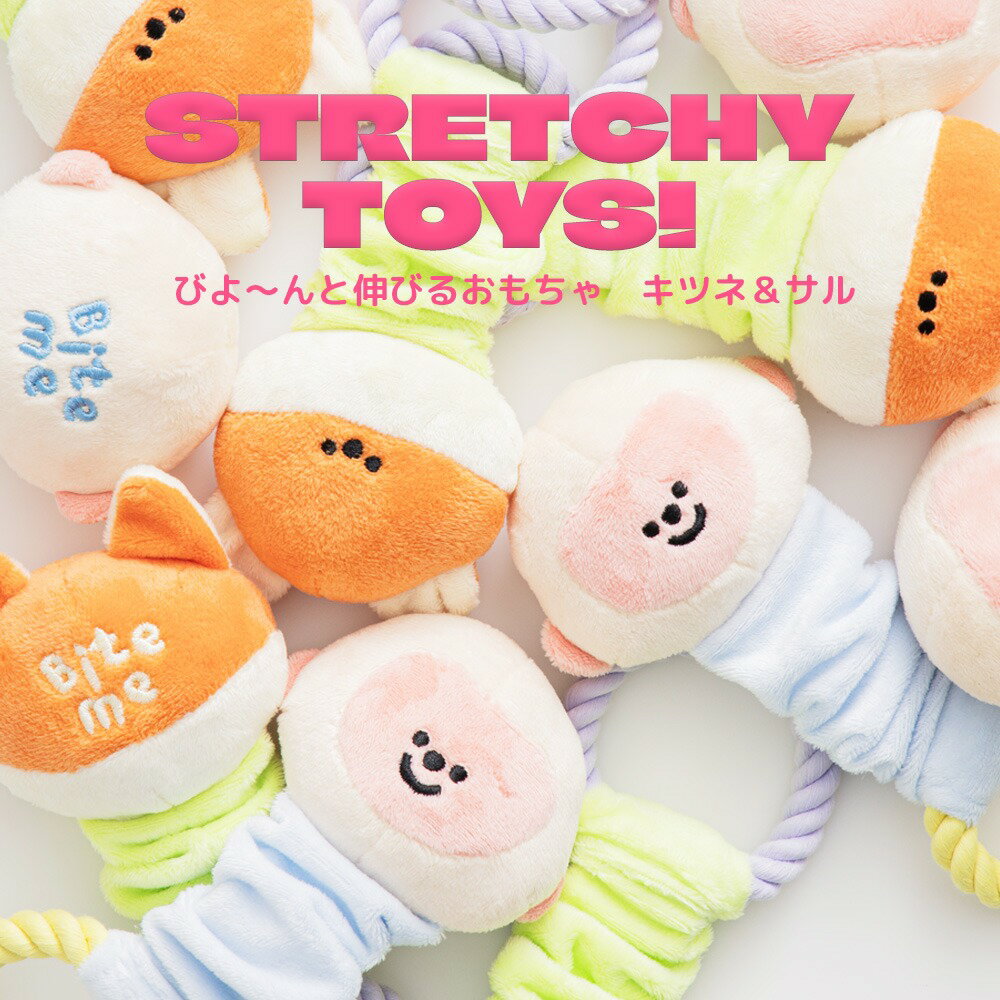 送料無料/ BITE ME バイトミー ストレッチトイ びよ〜んと伸びる キツネ サル 犬 おもちゃ 犬用おもちゃ 犬のおもちゃ ノーズワーク 引張り遊 ぬいぐるみ 韓国 海外 プレゼント ギフト 安全基準 ペットトイ 音が鳴る