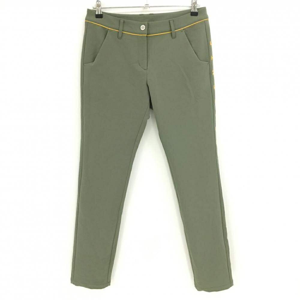 【超美品】デサントゴルフ パンツ ライトカーキ×オレンジ サイドロゴ 裏微起毛 ストレッチ レディース 67/L ゴルフウェア DESCENTE