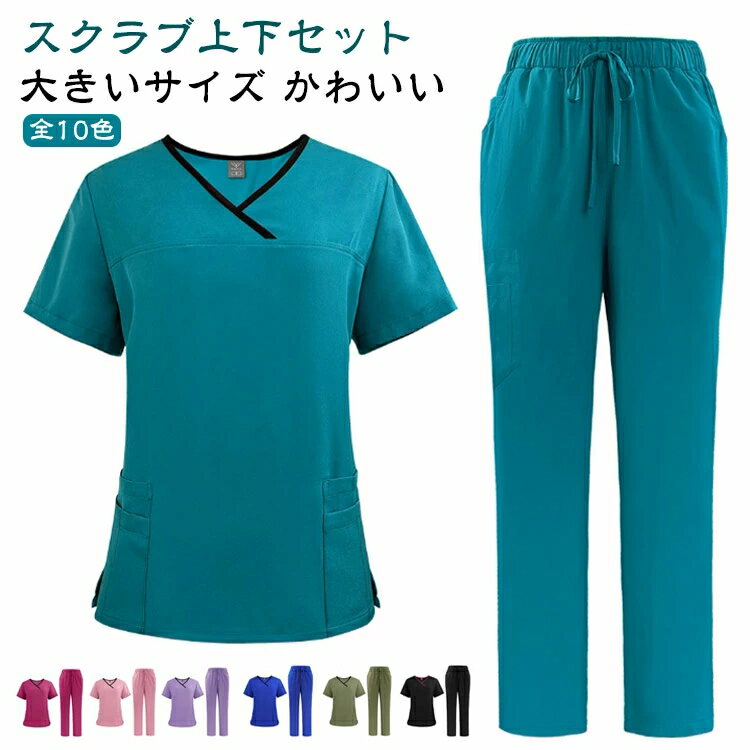 医療 ナース服 上下セット 白衣 ユニフォーム 医療用 パンツ かわいい 介護士 女性用 レディース ナース 看護師 半袖 スクラブ 総ゴムパンツ 白衣 ズボン ナースウェア エステ 白衣 医療用 看護師 介護士 クリニック 女性用 スクラブ