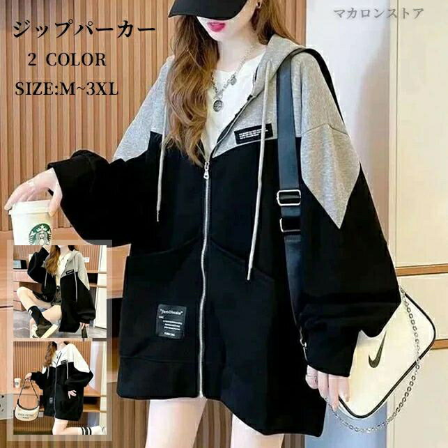 パーカー レディース 長袖ジャケット フード付き ジップアップ ジップパーカー アウトドア オーバーサイズ ゆったり 大きいサイズ 無地 トップス 韓国風 スウェット アウター カジュアル 秋服 春秋 体型カバー 薄手 おしゃれ 着痩せ 通勤 送料無料