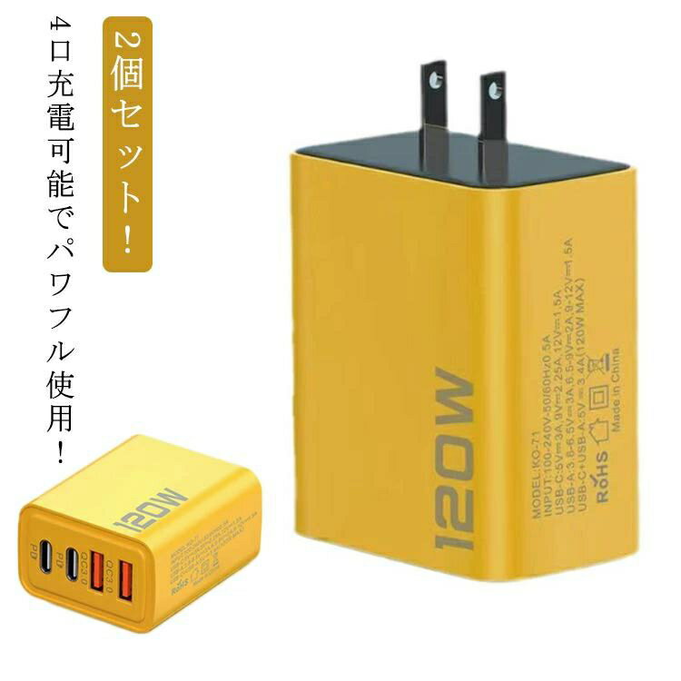 タイプC コンセント 120W 急速充電器 USB ACアダプター 4ポート USBx2 type-Cx2 iPhone/iPad/Android/MacBook/タブレット