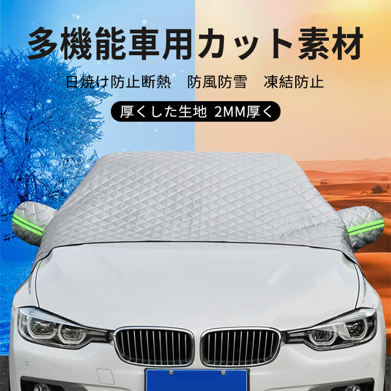 車 フロントカバー 凍結防止 カーフロントガラスカバー サンシェード エンジンカバー 日よけ 雪よけ サイトミラカバー 断熱 撥水 防水 フロントシェード 車保護シート 雪対策 夏冬兼用 盗難防止 フロントガラス 凍結防止シート