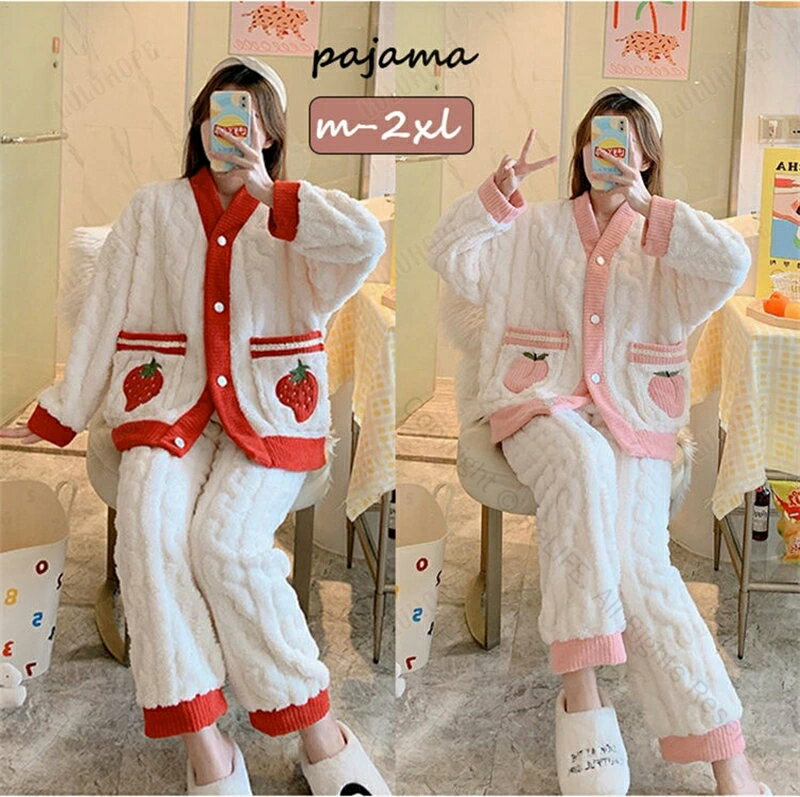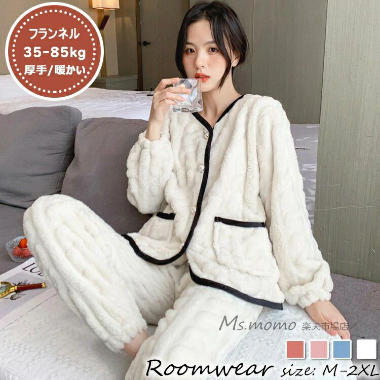 パジャマ ルームウェア レディース 秋冬 モコモコ 長袖 パジャマ 前開き フランネルルームウェア 大きいサイズ 暖かい 上下セット 可愛い 厚手パジャマ 女性 部屋着 寝巻き オシャレ