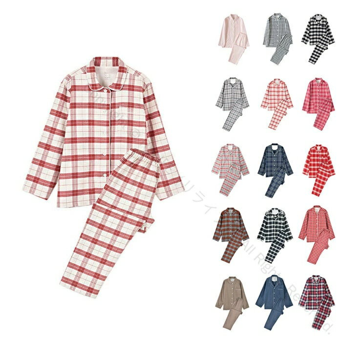 起毛ネル秋冬ルームウェア16色レディース長袖前開き衿付き長ズボン部屋着カップルナイトウェア寝巻き綿暖かいチェック柄無地柔らかい大人女性用婦人入院出産シンプルファミリー母の日敬老の日プレゼント快適