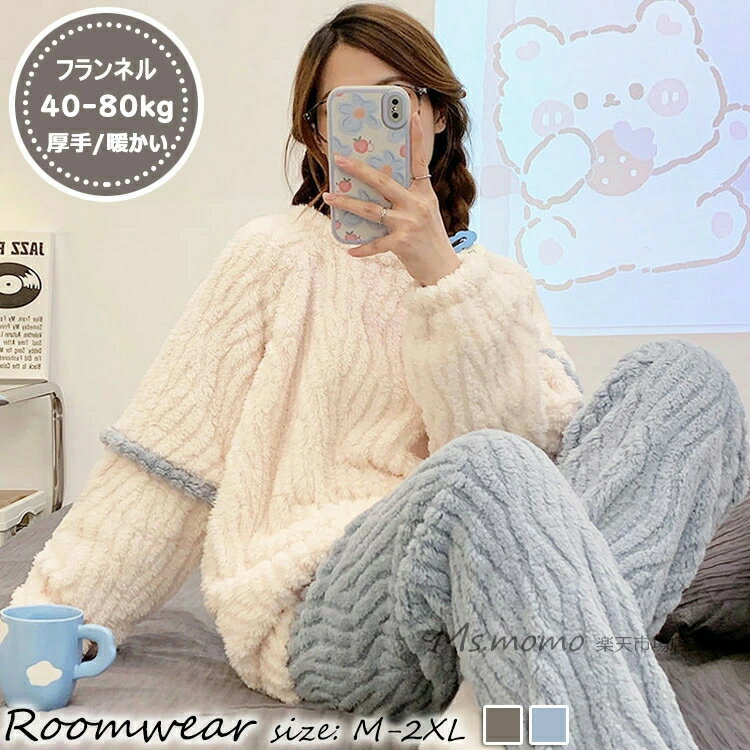 パジャマ 冬 大きいサイズ レディース もこもこ ルームウェア フランネル 長袖 上下セット 部屋着 あったか 暖かい 大人可愛い ベージュ グリーン ライトグリーン ピンク M L XL 2XL
