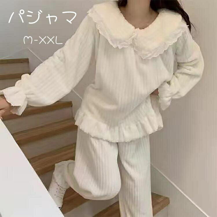 パジャマ レディース 秋冬 姫系 オシャレ きれいめ 長袖 長ズボン ルームウェア 上下セット 寝巻き 部屋着 セットアップ 防寒 ゆったり 上品