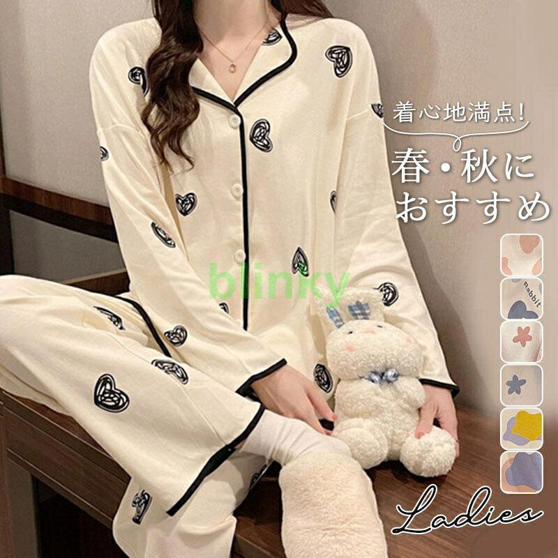 パジャマ レディース 七分袖 かわいい 春 秋 冬 ルームウェア 部屋着 上下2点セット 可愛い ロングパンツ 韓国風 寝巻きカジュアル 大きめ ゆったり