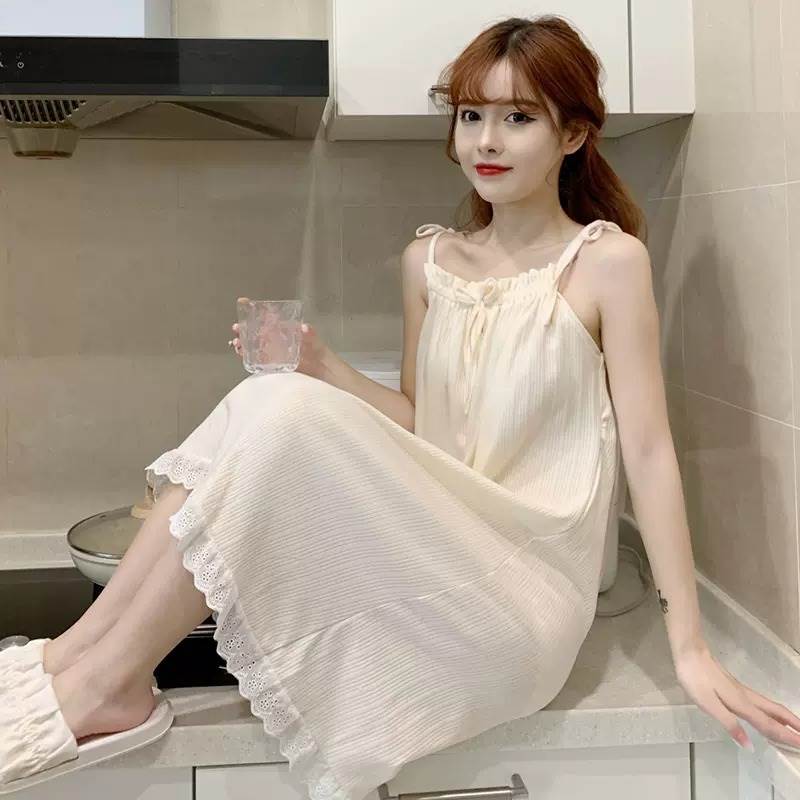 【P2倍&クーポン有】 甘め レディース ワンピース 膝丈 ルームウェア フリル ナイトドレス ピュアコットン ラフ サマードレス 膝上 ガーリー かわいい ギャザー レース リボン 大人可愛い こなれ感 膝下 パジャマ 主役級 おしゃれ 綿 コットン 部屋着