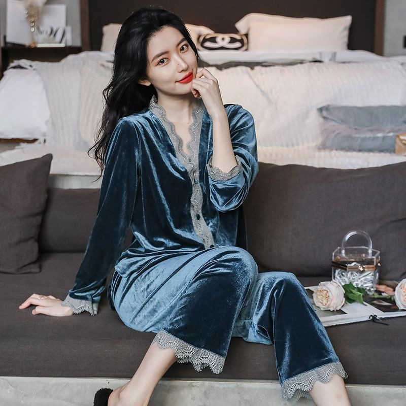 ルームウェア 上下セット レディース ベロア 部屋着 長袖 ルームウェア レース付き ゆったり ストレッチ 寝巻き Vネック セットアップ 厚手 パジャマ 可愛い 冬 ナイトウェア ホームウェア 室内着 長ズボン トップス あったか 暖かい 防寒 送料無料