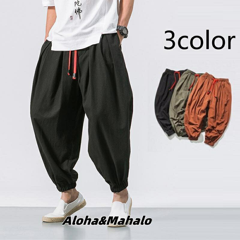 サルエルパンツ メンズ ワイドパンツ リネンイージーパンツ ハーレムパンツ ガウチョパンツ 薄手 カジュアル 大きいサイズ