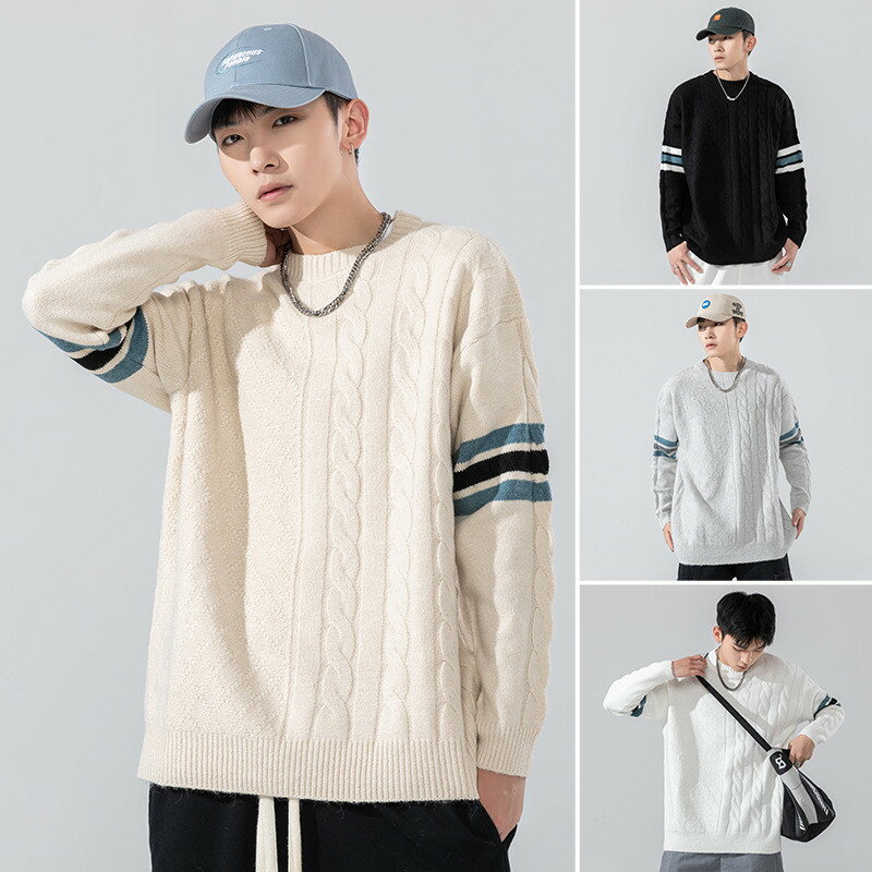 ニットトップス メンズ ニット 韓国 長袖 ニットセーター セーター クルーネック ビッグシルエット オーバーサイズ 送料無料 ケーブルニット カジュアル 体型カバー 暖かい おしゃれ かっこいい モード系 送料無料 ファッション 冬服 ケーブル編み