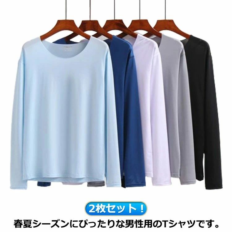 アイスシルク Tシャツ メンズ 接触冷感 tシャツ 夏 長袖 涼しい トップス シームレス tシャツ 薄手 ストレッチ 吸水速乾 丸首 2枚セット 紫外線対策 インナーシャツ 部屋着 ルームウエア 肌着 ジョギング 涼しい スポーツウェア ゴルフウェア