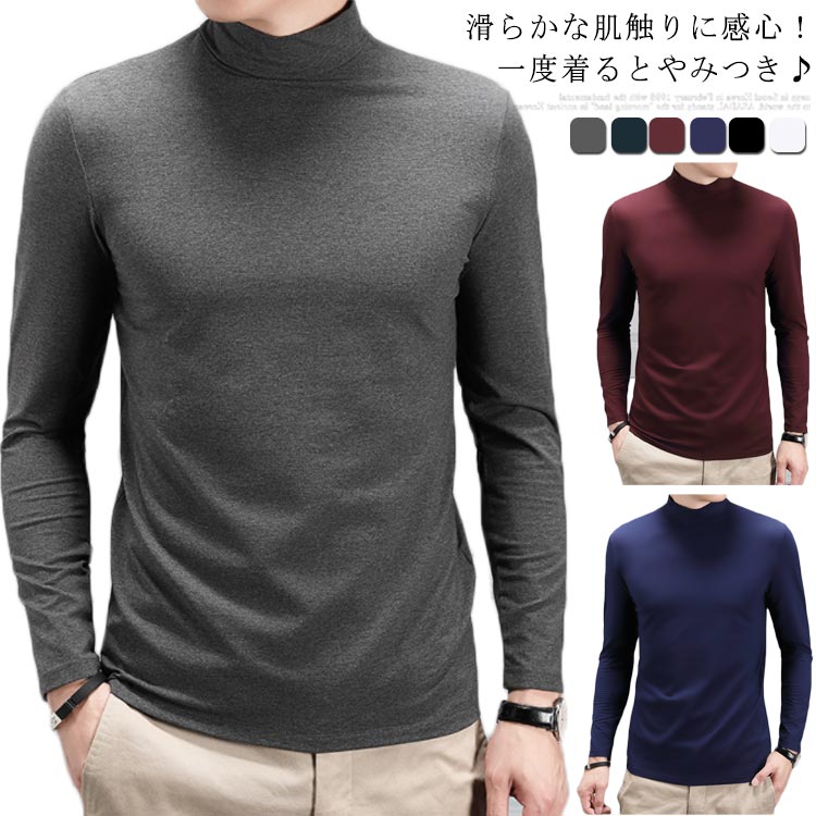全6色×6サイズ ハイネック カットソー tシャツ ロンT 長袖 メンズ 無地 トップス インナー 大きいサイズ モダール 春秋 冬 ビジネス 通勤 普段着 レイヤード 重ね着