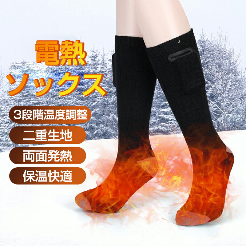 お買い物マラソン【P5倍】電熱ソックス 発熱ソックス 電熱靴下 3段階温度調整 加熱 ヒーター ホット ソックス 靴下 加熱 靴下 Socks 足元 防寒対策 保温 発熱 暖かい 水洗い可 冬用 寒さ対策 足元ヒーター 釣り サイクリング スキー アウトドア サイズフリー 男女兼用